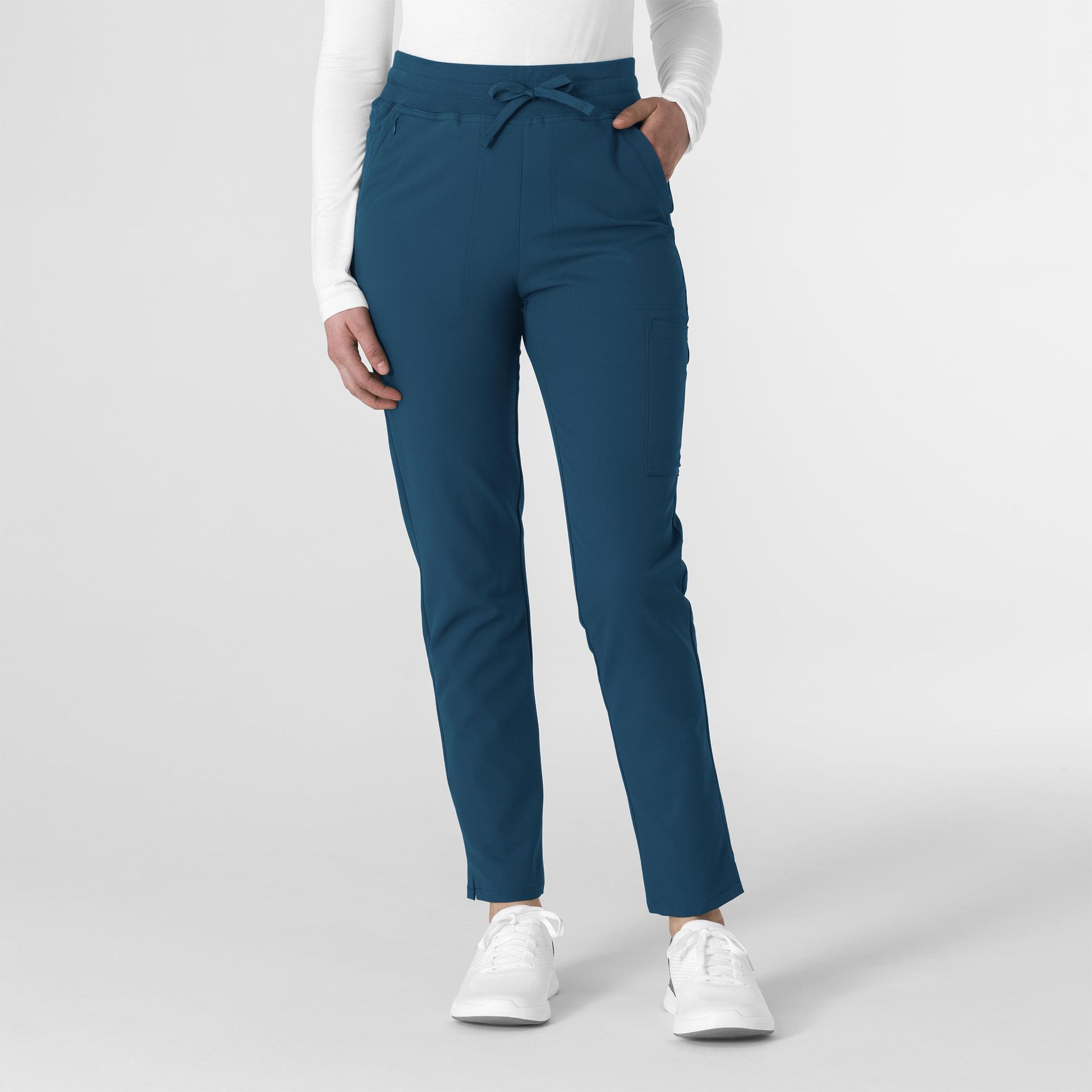 - Vestibilità moderna con vita più alta con maglia a costine colorata in tinta, coulisse completa ed elastico interno